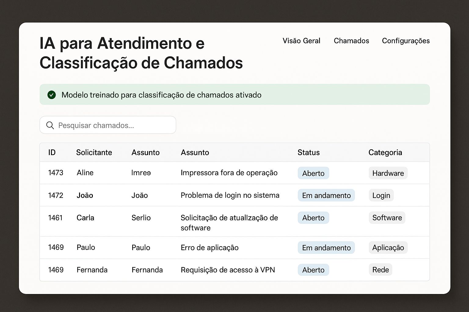 Ia para Atendimento e Classificação de chamados